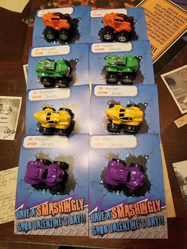 Fun 16pcs Kids Valentines Cards With Monster Truck Toys